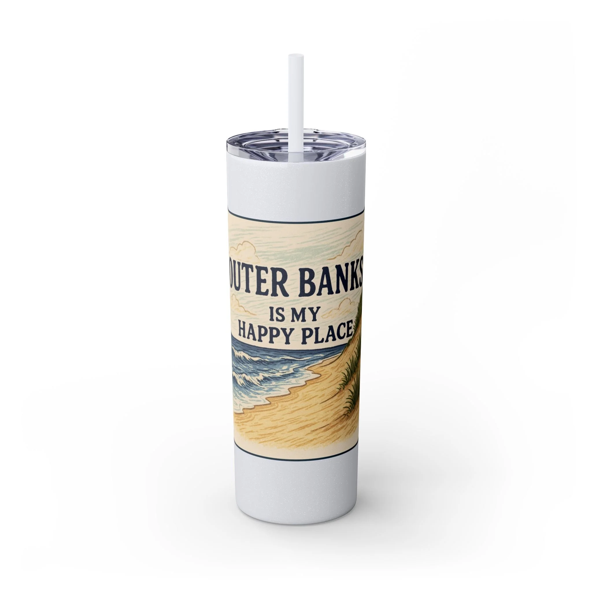 Outer Banks Chill Wine Tumbler - Beach Dunes Design Happy Place